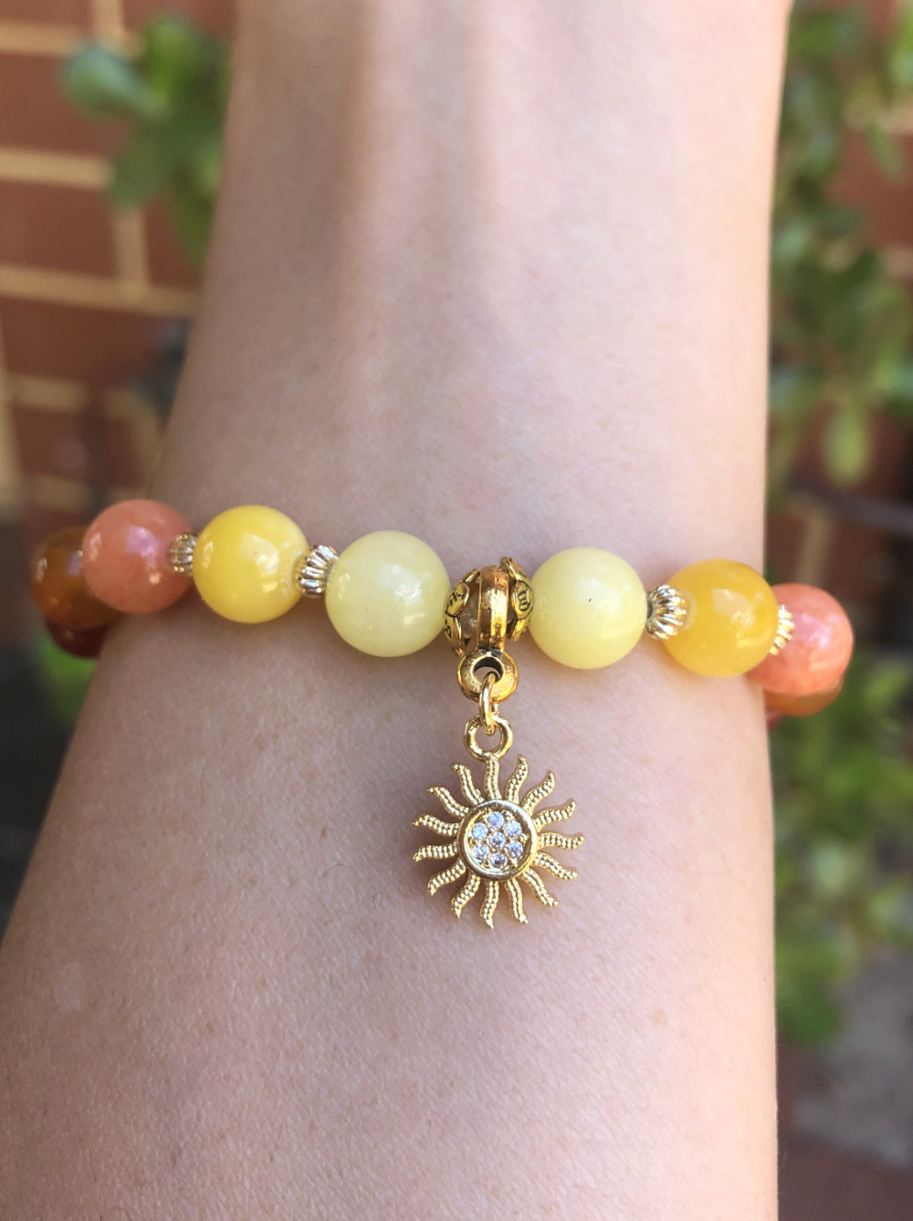 Each Leo Gemstone Bracelet is handcrafted using natural gemstone beads chosen to reflect the Leo colour palette. While stone combinations may vary slightly over time, they remain within the same tonal range. Commonly used stones include Jasper, Carnelian, and Quartz.