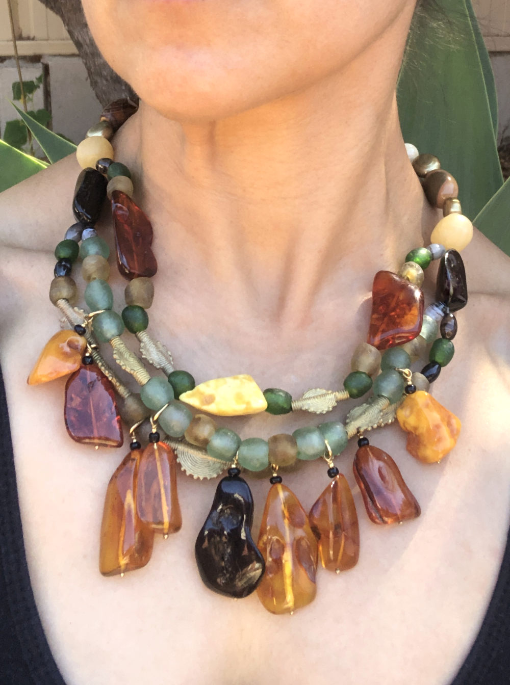 Wangera is an African name that means traveller – apt for a necklace composed of materials that have journeyed across cultures and centuries.